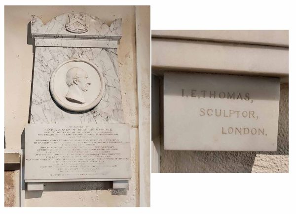 John Evans Thomas had sculpted Daniel Jones in his lifetime, having been commissioned to carve his bust for the Cardiff Infirmary which he had generously endowed. This bust now stands in the entrance hallway to the National Museum of Wales”.